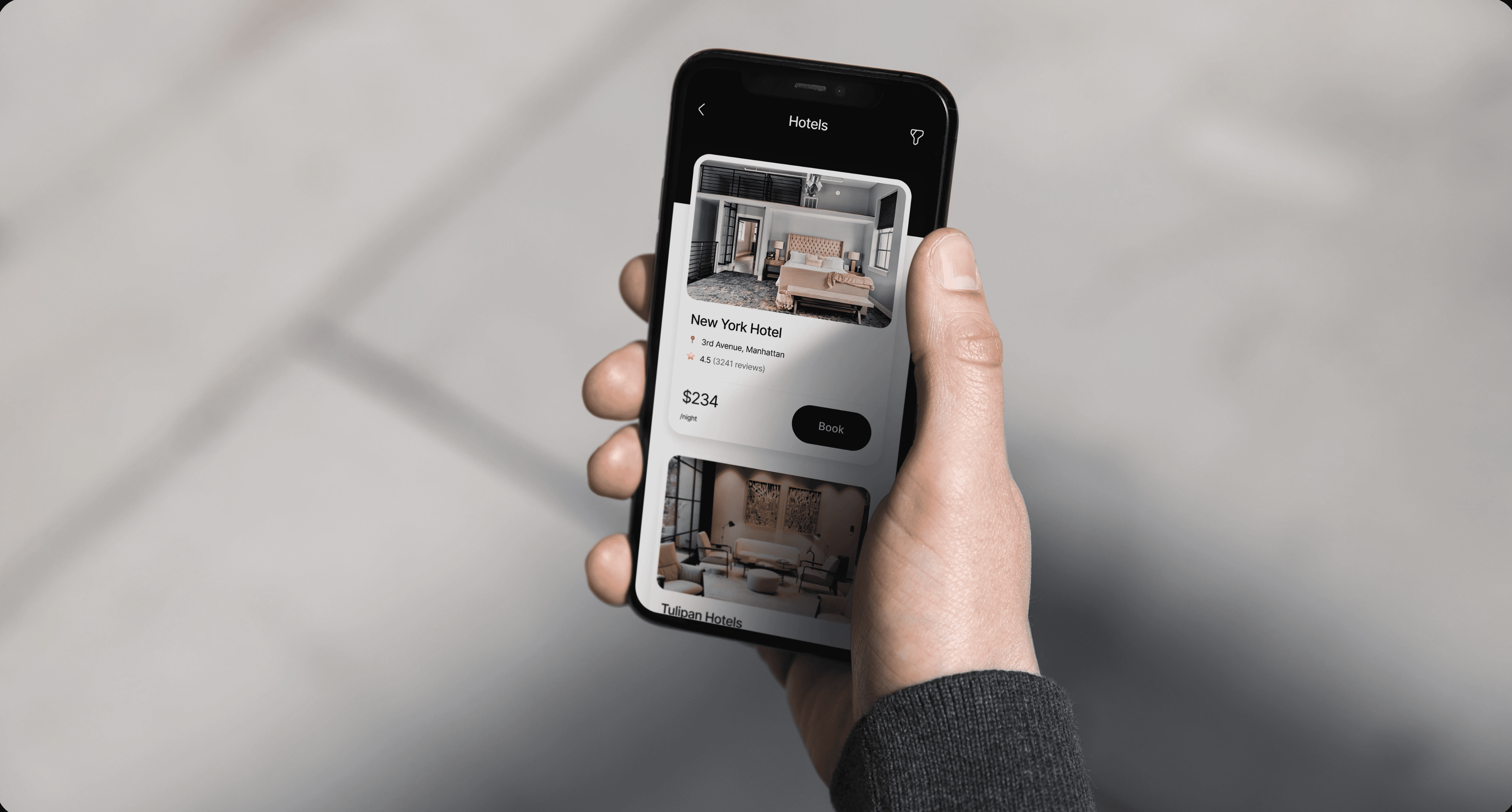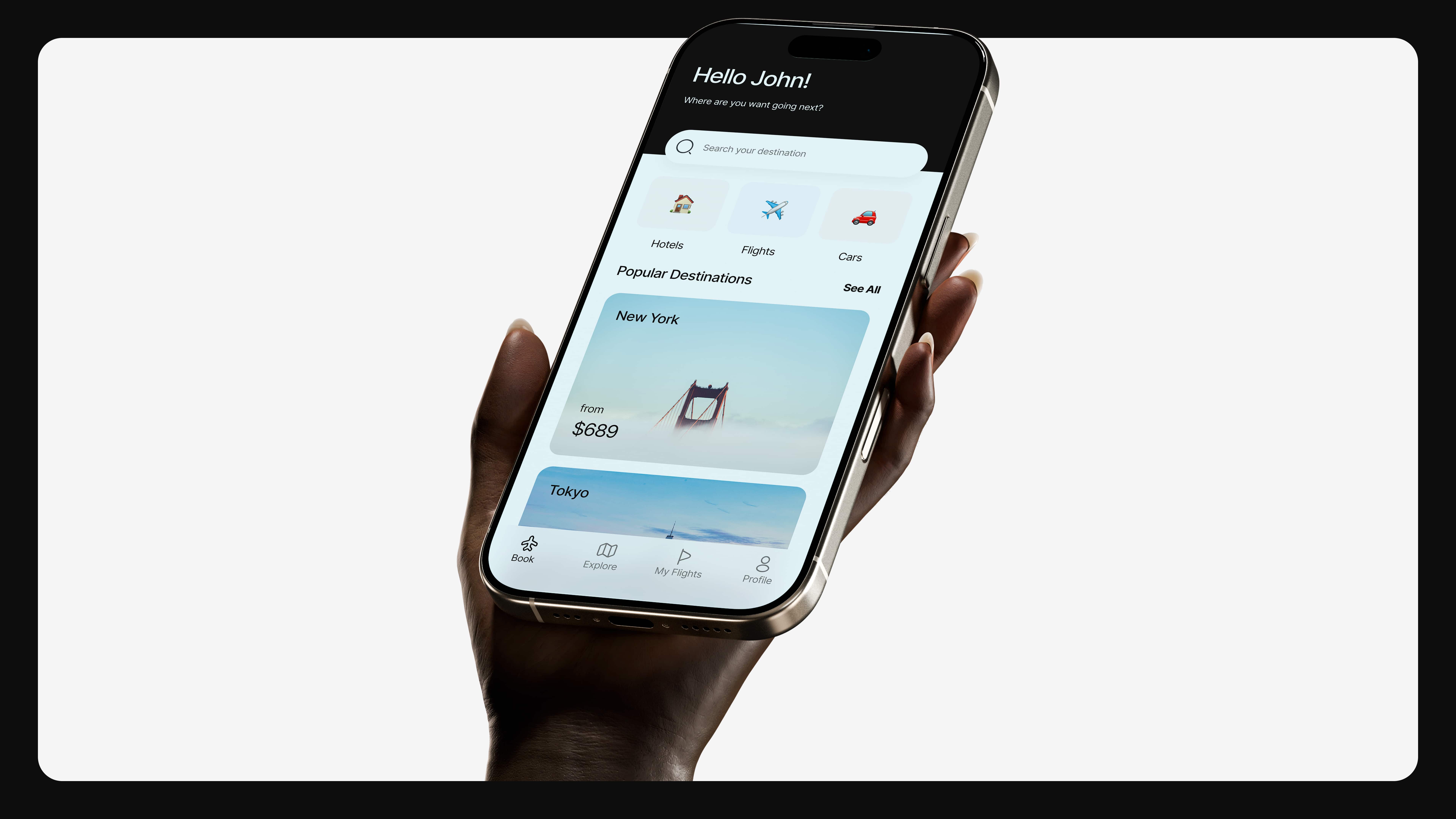 UI Design — built a modern, visually immersive interface emphasizing photography and minimal layout.